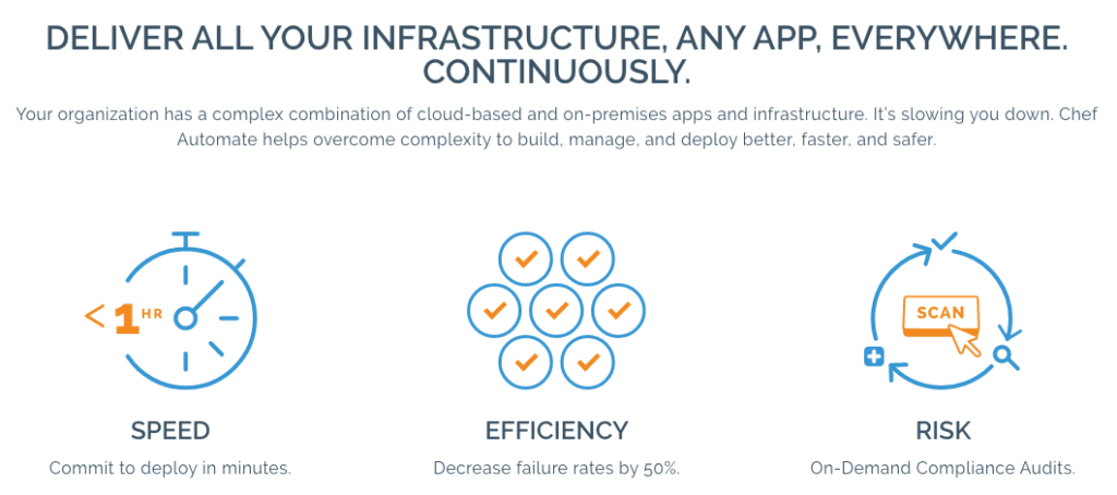 Enterprises today have to adapt to changing needs in application and infrastructure management – and Chef Automate helps empower organizations to embrace modern software practices such as DevOps and continuous delivery to build, deploy and manage software to meet customer expectations.
