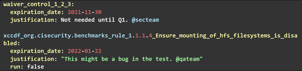 The idea of skipping controls isn’t new to InSpec users. The drawback of skipping controls, however, is that there is no documentation trail. This leaves users with no way of knowing the purpose of the skip or how long ago it was implemented. Exceptions to a company's compliance posture have major ramifications during audits, so in order to maintain operational continuity, these exceptions should be accounted for. Waivers within InSpec fix this issue.