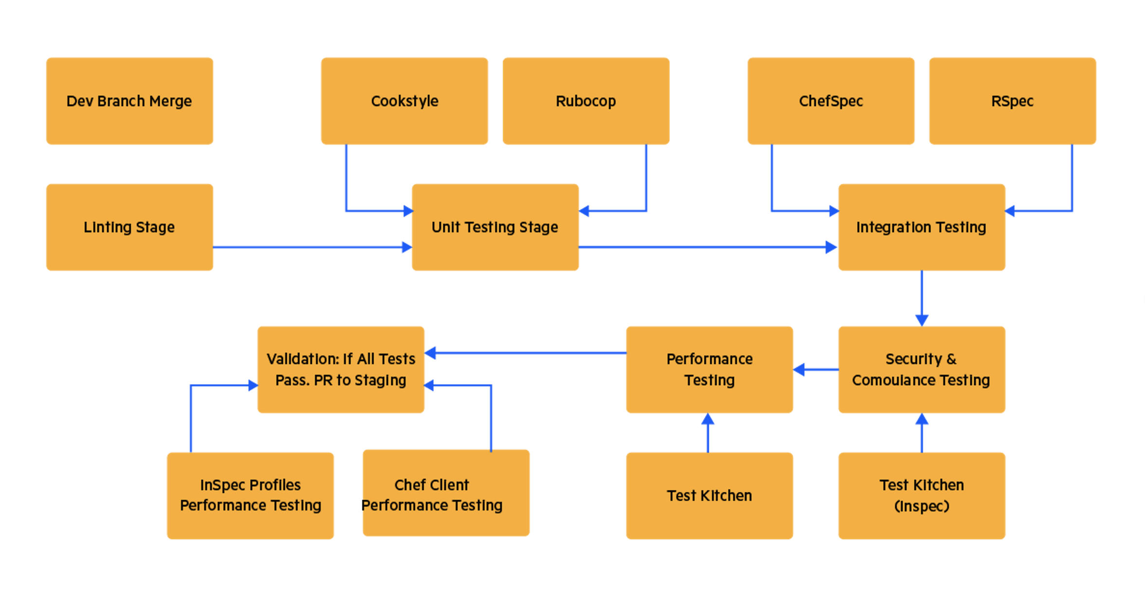 - InSpec Tests maintain compliance for the production environment, securing the system before final deployment.