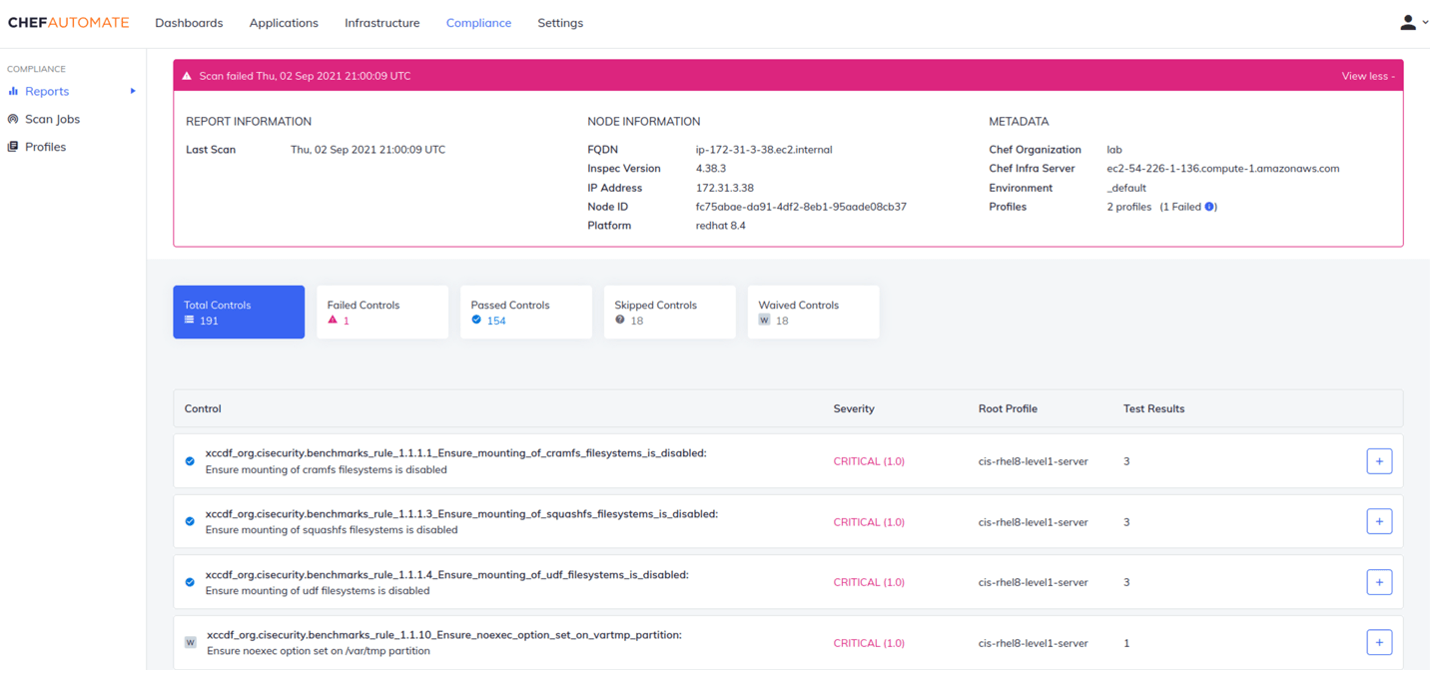 Comprehensive compliance visibility and flexible waiver capability leveraging an extensive library of CIS certified Chef Premium Content