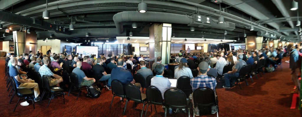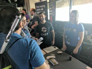 After the morning keynotes, attendees enjoy traditional Texas BBQ for lunch, and many great hallway conversations can be overheard in and around the stadium box seats. The expo floor is abuzz with questions and DevOps discussions. Chef and DevOps go hand-in-hand, and many curious attendees stop by our booth to ask about our newest compliance and application automation offerings.