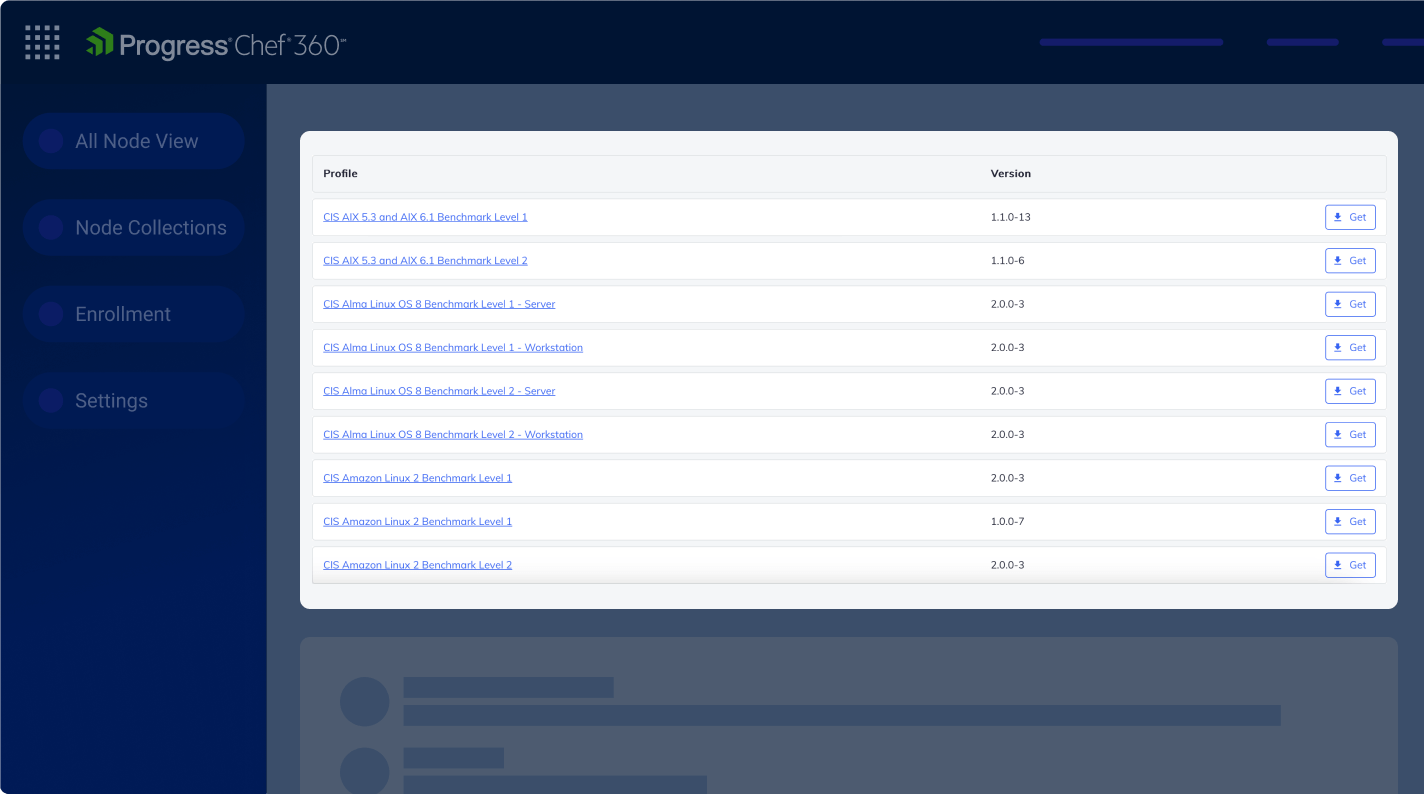 Access prebuilt, customizable security and compliance profiles—like CIS benchmarks, DISA STIGs, and Chef-curated guides.