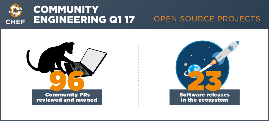 We’re excited to be in Austin, TX this week for ChefConf. Today we’re hosting a Community Summit so it’s a great time to reflect on some of the amazing things the community and community engineering team at Chef completed in the first three months of the year!