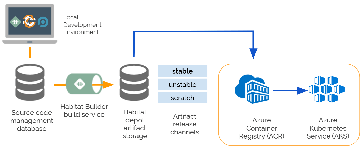 While we’ve described how to deploy to Kubernetes before, one missing step has been how to get your private Habitat packages deployed to Azure Kubernetes Services (AKS). Today we’re announcing support for publishing to Azure Container Registry (ACR) directly from the Habitat Builder service. This allows you to have a seamless, integrated workflow from pushing code to GitHub right through to your service being deployed into AKS.