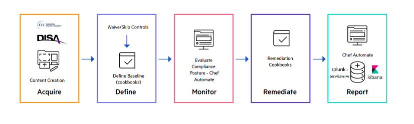 Chef Compliance and Chef Cloud Security solutions use CIS and Defense Information Systems Agency (DISA) Security Technical Implementation Guides (STIG) benchmarks to audit and remediate misconfiguration in on-premises and cloud environments to help make IT ecosystems more secure and compliant.