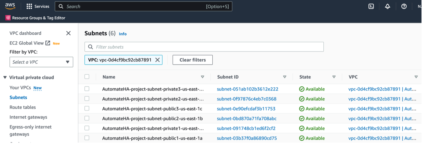 o If AWS VPC uses Subnet, set private_custom_subnets to the three private subnets we created in the prerequisites step and public_custom_subnets to the three public subnets we created in the prerequisites step.