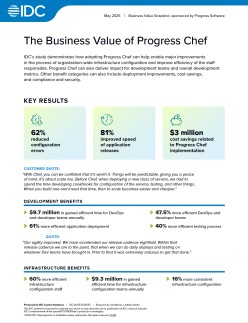 Learn how Progress Chef reduces configuration errors by 62%, speeds up app releases by 81%, and drives millions in cost savings. This IDC white paper reveals real-world benefits of Chef's automation across DevOps and infrastructure teams.