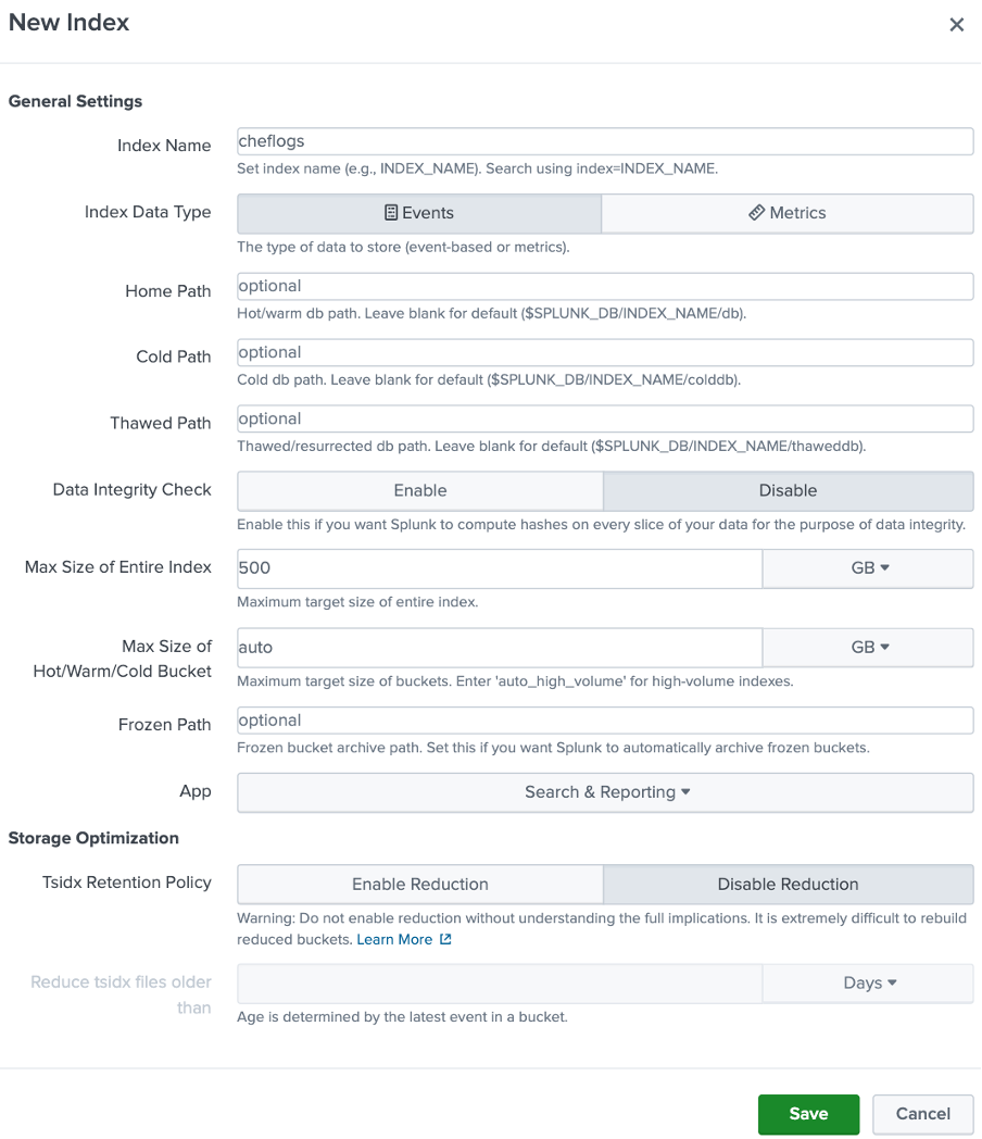 settings>indexes>new index.This is the directory where the logs will be stored.
