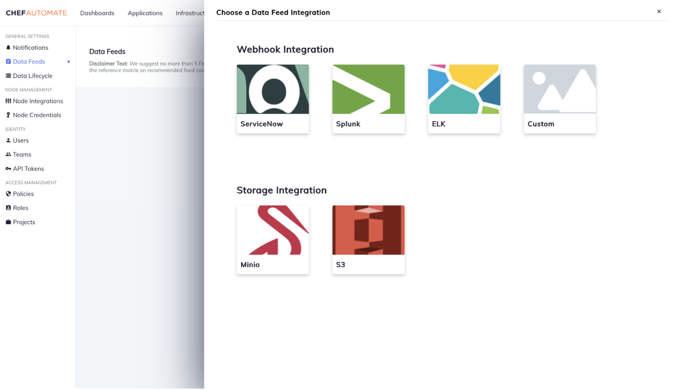 To apply your configuration changes with the Chef Automate command-line tool: $ chef-automate config patch data-feed-patch.toml