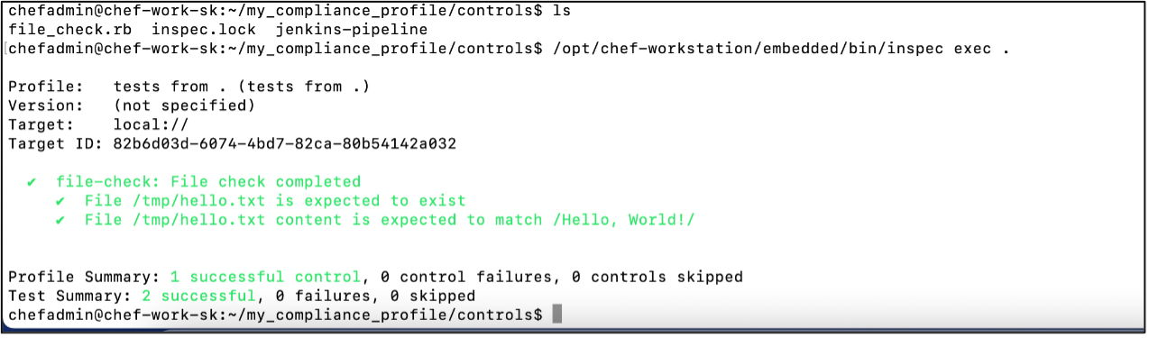 Confirm that the Chef cookbooks and Chef InSpec profiles are ready. We can create new ones or use existing profiles to define your compliance standards.