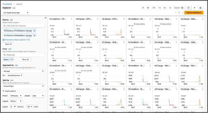 Metrics Explorer can be leveraged to monitor Chef Automate HA resources by tags. By choosing Explorer under the Metrics menu, the ability to filter, aggregate and visualize data by tags and properties is made available.