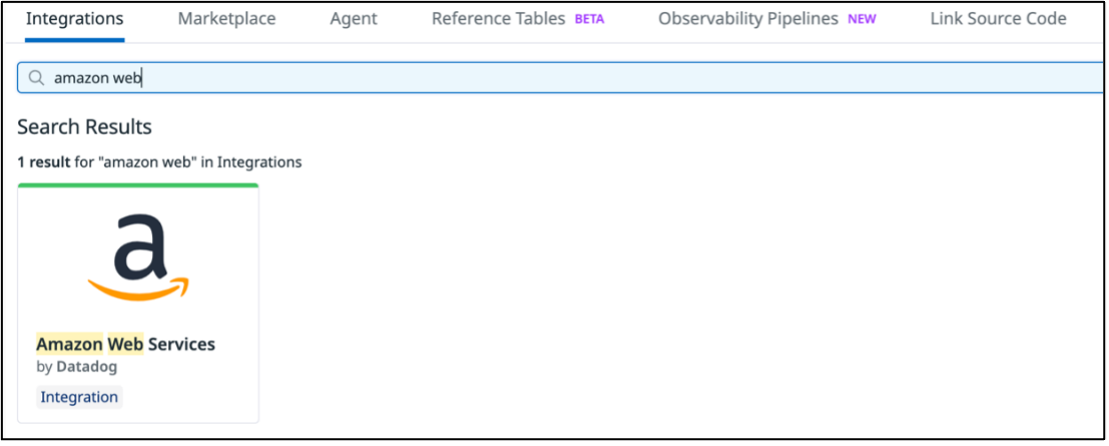 To configure Datadog, navigate to Integration and search for Amazon Web Services, select Configure and then select Add AWS Account.