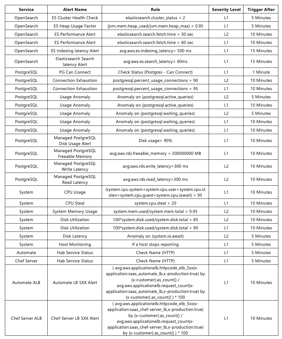 Details for how to leverage different Datadog alert options for Chef Automate can be found in the Monitoring Chef Automate HA with Datadog whitepaper: