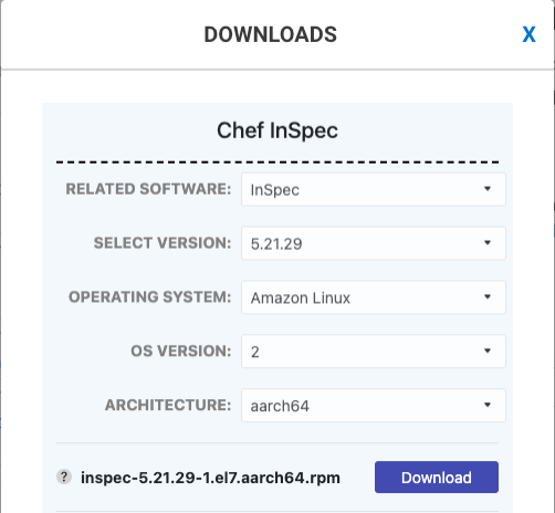 For example, if you want to download Chef InSpec: