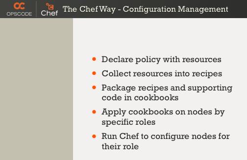 I want to personally thank everyone who attended the Opscode Community Summit and gave great feedback during the training session. Also, thank you everyone who has attended a Chef Fundamentals course (public or private) and provided feedback to improve the materials.
