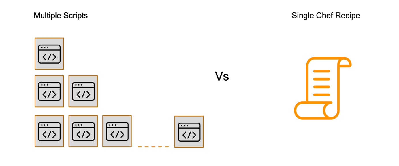 A configuration management tool like Chef not only makes it easy to configure your endpoint state as code compared to writing complex and lengthy scripts, but its “code-first” approach also helps setup an SDLC process ensuring that changes are well vetted and tested before pushing to production. It makes the overall cost of change less expensive and increases IT team productivity. With Chef, it is even possible to perform compliance checks by specifying your compliance policies as code.