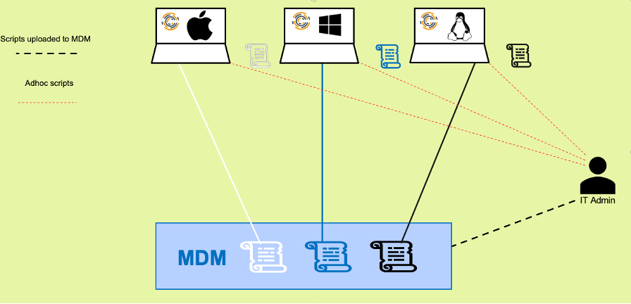 Some scripts need to be run at a user level and some need to be run at a system level on the end user devices. Differentiating the two and running the script with the right permission becomes a barrier to efficiently deploying the scripts.