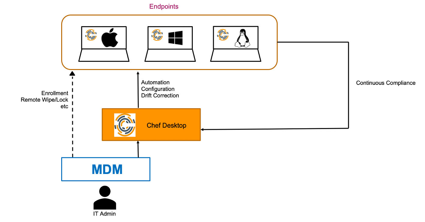 - Automated configuration drift correction: Chef can be configured to run periodically on end-user devices to ensure that configuration drifts are managed automatically.