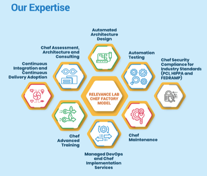 Chef Factory is Relevance Lab’s proprietary Chef implementation model, it is a collection of best practices, reference architectures and a library of cookbooks, recipes, profiles and plans delivered by a certified workforce spread across North America and APAC.